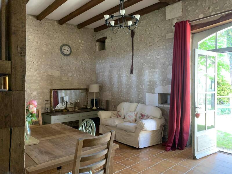 l'Etable is a spacious two bedroom gite with impressive hardwood arched doors. Plenty of exposed stone walls and beams, making it very characterful.